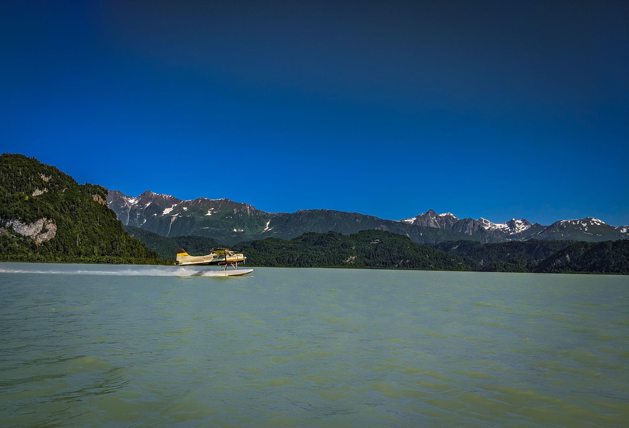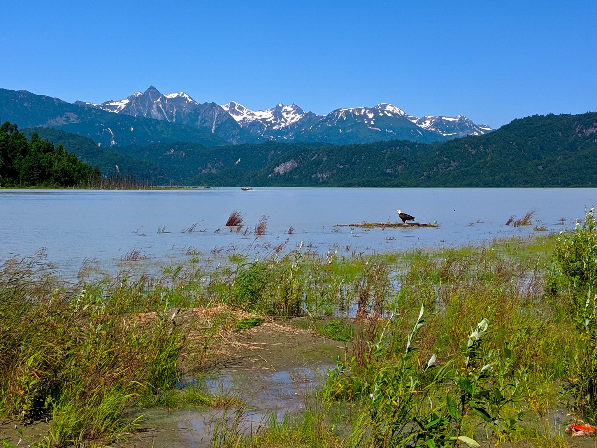 A train of john boats filled with tourists were waiting their turn to “feed the bears” and after our go, our guide 180’d the boat and powered it steadily up to a 50mph course to a wide open marsh in the middle of Lake Clark National Park and Preserve. Nothing in sight for hundreds of miles it seemed and our deHavilland Beaver float plane wouldn’t be back for another half-hour. Nothing in the sky. We had a few leftover fish (pink salmon) in the boat with us and I couldn’t see another human or animal in any direction I looked, and I had binoculars.
